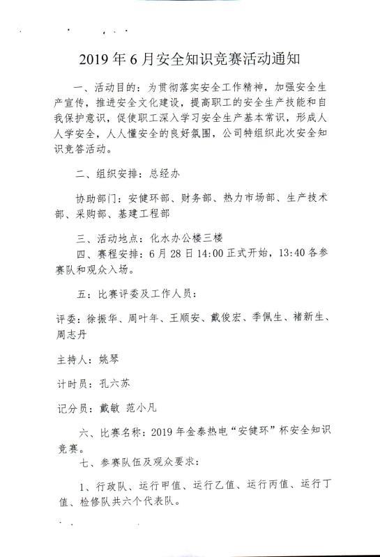2019年6月安全知识竞赛活动通知