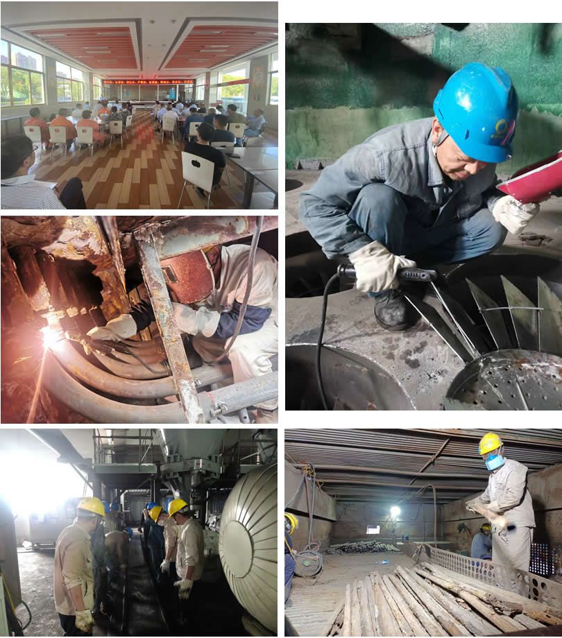 #4炉检修于8月1日正式开工,计划8月16日全部检修结束,具备启炉条件,计划工期共16日历天。本次检修时间紧、任务重、要求高,为了安全、环保、优质、高效按期完成大修任务,热电事业部将泵与风机、电除尘器、布袋除尘器、空预器等项目外包,其中江苏蚁工负责电除尘器及布袋除尘器维修改造工程,南通长江负责#4炉空预器管及布袋除尘盖板、喷吹管更换工程。锅炉受热面、给煤机、脱硫吸收塔等项目公司自行检修。